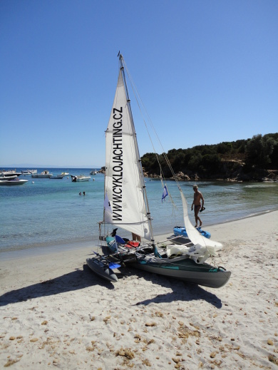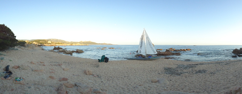Obepluli poloostrov Roccapina a přistáli ve stejnojmenné zátoce plné zakotvených jachet a s pláží plnou lidí. Na parkovišti kousek od pláže stálo Zbyňkovo zaparkované auto. Přestěhovali větší část zavazadel do auta. K večeru si vyrazili na vyjížďku k útesům a majáku asi šest kilometrů naproti zátoce. Na majáku vysela cedule zakazující stání karavanů, stanování, parkování a rozdělávání ohňů. Jeli tedy raději spát zpět na pláž. Když se vrátili, byla již pláž zcela prázdná. Kotvící posádky je vítali potleskem, ale své útulné kajuty s chlazenými nápoji a grilovanými dobrůtkami si nechali pro sebe. Připravili si spaní na pláži. Za chvíli zpozorovali, jak kolem nich pobíhají dvě divoká prasata a liška. Od jedné z jachet připlul otec s malým synkem a pokoušeli se vypustit lampión, ale ve větru se jim to nepodařilo.
