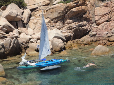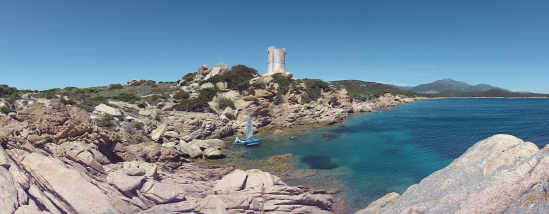 V pátek ráno odnesli zbylé věci do auta a dohodli se, že Petr pojedu na lodi, Zbyněk autem. Sejdou se v zátoce Cala di Furnellu. Po cestě zkusí nafotit loď na moři. Petr dal Zbyňkovi půl hodiny náskok a vyrazil. Vanul západní svěží vítr a loď plula většinu cesty s plachtami na motýla. Když minula věž ď Olmeto a plula podél útesů do zátoky, uviděl Petr Zbyňka stát a mávat na skalisku. Provedl s lodí několik obratů pro kameru a zamířil do zátoky. Se Zbyňkem naložili svačinu, šnorchly, ploutve a Zbyňkův nafukovací kajak Safari. Dopluli do zářezu v útesech pod věží ď Olmeto a vyvázali loď ke skalám. Zašnorchlovali si a podívali se k věži nad nimi. Potom vyrazili na poslední plavbu k pláži v zátoce. Seděli každý ve své lodi na místě kormidelníka. Zbyňkova loď byla položena a uvázána na návětrném plováku. Díky tomu Zbyněk v silném větru pěkně vyvažoval.