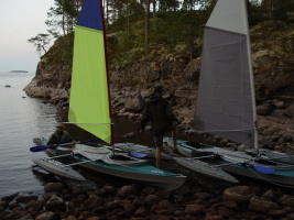 Vyhlídli jsme si zátoku u mysu Rachaniemi. Vylodili jsme se v půl dvanácté v noci a zakempovali.