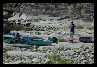 Jen taktak jsme stihli odnést lodě z vody a postavit stany a nastalo černé a mokré peklo. Po dvou hodinách déšť ustal a vysvitlo slunce. Protože zátoka byla dobře chráněná, prosluněná a mělká, rozhodli jsme se zůstat dva dny, rybařit a relaxovat.
