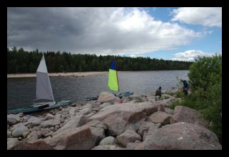 Vítr pomalu přestal foukat úplně a hodinu před půlnocí jsme přistáli u ostrova v zálivu Sojkkasjenlachti. Hned po přistání se do nás pustili komáři. Na ostrovech na volném jezeře se nevyskytují, protože je odnáší vítr, ale v porostech více ve vnitrozemí koušou jako o život.