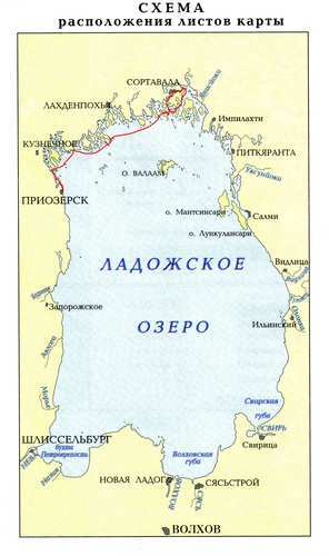 Jezero které téměř omývá vlakové kolejnice není jezero Ladoga, ale Vuoksa. Podle mapy jsou obě jezera spojená průlivem.