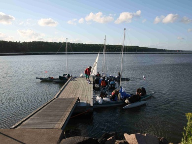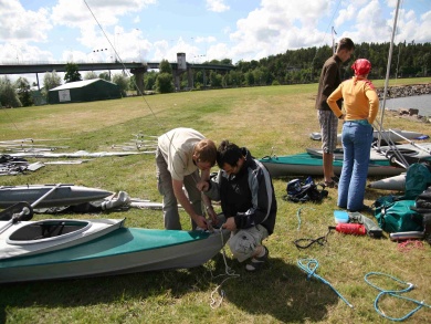 Ráno v pět nás budili rozhlasem. Bohužel to byla krátká noc, jinak ale dobrý. Na snídani se k nám přidali Jindřich a Jarmila a přinesli nám dva lístky na snídani. Potom přinesli ještě jeden, takže na tři lístky se nasnídalo šest osob. V šest hodin jsme byli vyzváni k nástupu do aut a vyrazili jsme směr Götteborg. První zastávka byla na benzinové pumpě a odpočívadle s dětským hřištěm, které jsme okamžitě oblehli a protáhli naše kosti. Druhá zastávka byla na benzinové pumpě, kde nebyly žádné záchodky, ale ještě větší záhada bylo samotné tankování. Nejdříve se zandala bankovní karta do stojanu, odečetlo to nějaké peníze a za ty se dalo tankovat. Ještě jsem zapoměla dodat, že když jsme nastupovali do auta na trajektu, přišla k nám nějaká němka, zda jedeme na sever, že by se přidala. A tak teď sedí s námi v buse a za chvíli již dorazíme do Wänersborgu. Je dvanáct nula pět a dorazili jsme na místo. Svítí sluníčko, je větrno, na obzoru jezera jsou vidět plachetnice a kousek od nás kotví jachty. Vyložili jsme lodě a zásoby z busu a odeslali bus, řidiče Jindru a stopařku do Amalu a dali se do stavění lodí. V půl čtvrté je první loď kompletně postavená a ostatní skoro postavené. Zbývá jen plachtoví. Pavel chvili zkoumá postavenou loď, potom pozoruje Petra při práci na další. Nakonec se vrátí k Davidovi a jejich rozestavěné lodi a prohlašuje „Tak od Šakala jsem se nic nenaučil!“ V pět hodin přijel Jindřich po té, co zaparkoval bus v Amalu. Spustili jsme lodě na vodu, naložili zásoby. Těsně před vyplutím odnesl vítr Jindřichovi list mapy do jezera. List byl zatavený do folie a byl kupodivu těžší než voda. Jindra se díval, jak se pomalu potápí. Vítr vzal další list Jindrovi mapy a poslal ho do jezera. Volali jsme na něj, ať ho vyloví. Vzal tedy pádlo a potopil ho hned. Pro každou ze čtyř lodí byla připravena jedna kopie mapy. Teď už bylo jasné, že Jindra ji nemá kompletní. Ještě jsme měli pro každou loď připravenou buzolu. V této chvíli jsme ještě nevěděli, že díky magnetickým anomáliím bude na většině jezera k ničemu. Mapa se tak stala jedinou spolehlivou navigační pomůckou. V sedm hodin jsme vypluli podél pobřeží s jihozápadním větrem v zádech, plachty rozložené na motýla. U úpatí hory Hallesnipen jsme zastavili na čůrání. Objeli jsme horu do závětří a v jedenáct hodin večer jsme přistáli na písečné pláži. Jitka a já jsme se vykoupaly. Všichni postavili stany, rozdělali oheň, povečeřeli a šli spát.