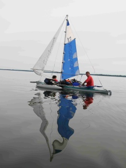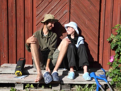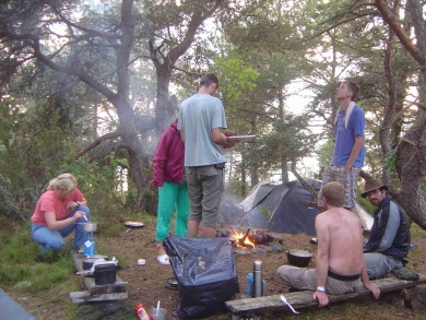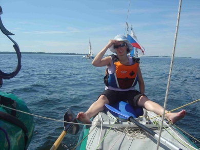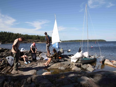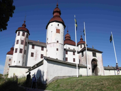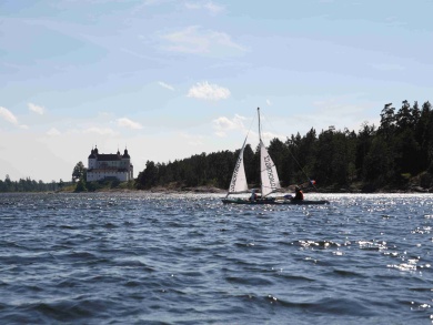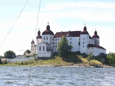Ráno foukal silný jihozápadní vítr a my jeli na prohlídku zámku Läckö. Na ostrově zůstala hlídka ve složení David a Jarmila. Když se před námi zámek konečně objevil, museli jsme k němu dokřižovat proti větru, což se proti silnému větru se zrefovanými plachtami zdálo téměř nekonečné. Dopluli jsme pod zámek, posvačili, Petr prozkoumal štolou vedoucí z pod zámku zámeckou studnu a vyrazili na prohlídku. Bez placení vstupného jsme prošmejdili co se dalo. V podzámčí jsme koupili Jarmile čokoládu a objevili strom plný třešní. Švédové jsou asi zvyklí kupovat všechno v supermarketu. Oškubali u zámku třešně a vyrazili zpátky. Po té, co jsme zakotvili lodě na našem ostrově, začala nám je okukovat zvědavá kachna. U Petra se projevil pavlovův reflex a začal ji lovit. Sice jsem mu pod záminkou krájení chleba zabavila nůž, ale stejně ji ulovil. David ji oškubal a vyháčkoval.