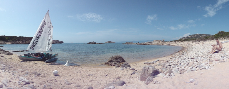 Příjezd do Livorna, přejezd trajektem do Bastie, nocleh na trajektu. Přejezd do Propriana, stavba lodí, koupání.(2. 8. sobota)